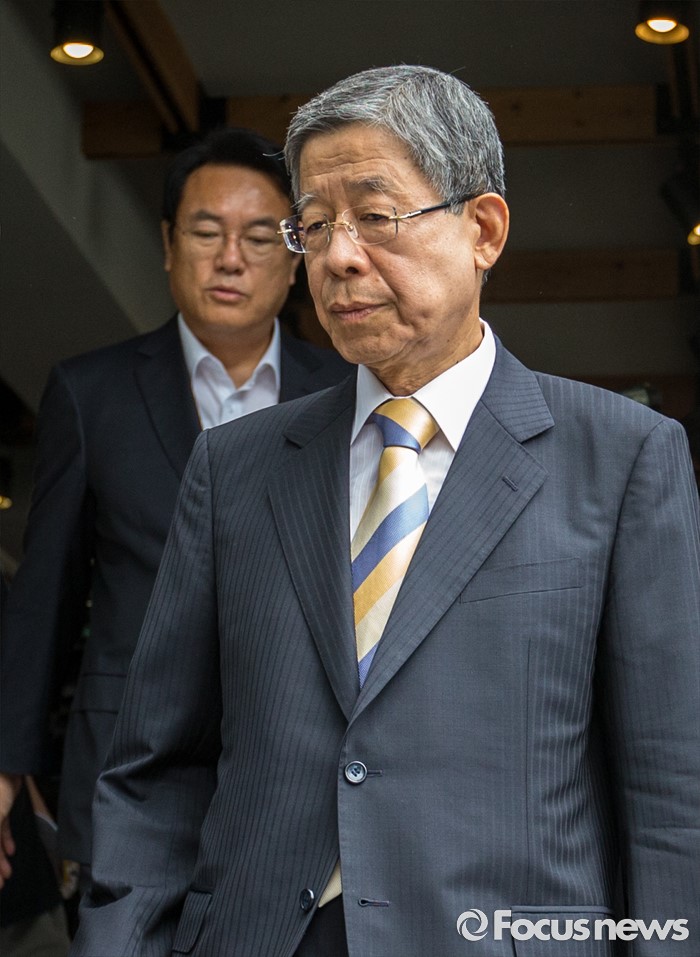 (서울=포커스뉴스) 김희옥(오른쪽) 새누리당 혁신비상대책위원장과 정진석 원내대표가 19일 오전 서울 강남구 논현동 한 커피숍에서 회동을 마친 뒤 굳은 표정을한 채 이동 하고 있다.