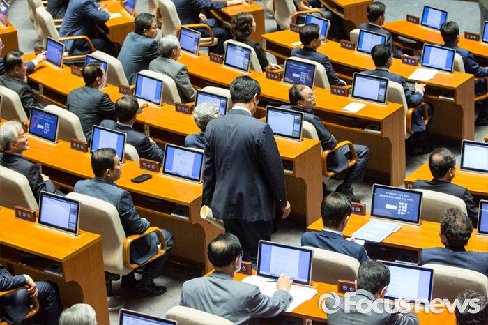 (서울=포커스뉴스) 정진석 새누리당 원내대표가 20일 오전 서울 여의도 국회에서 열린 본회의에 참석해 교섭단체 대표연설을 하기 위해 연단으로 향하고 있다.