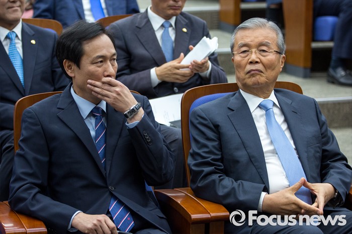 (서울=포커스뉴스) 김종인 더불어민주당 비상대책위 대표와 우상호 원내대표가 20일 오전 서울 여의도 국회에서 열린 '민생국회, 일하는 국회 워크숍'에 참석 하고 있다.