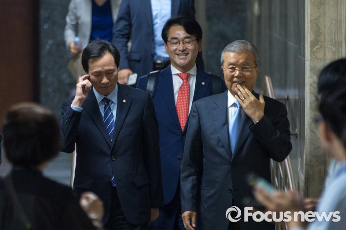 (서울=포커스뉴스) 김종인 더불어민주당 비상대책위 대표와 우상호 원내대표가 20일 오전 서울 여의도 국회에서 열린 '민생국회, 일하는 국회 워크숍'에 참석하기 위해 회의실로 이동 하고 있다.