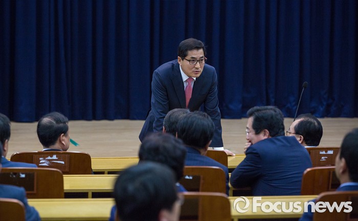 (서울=포커스뉴스) 박대출 새누리당 의원이 20일 오후 서울 여의도 국회의원회관에서 열린 친박계 초재선 의원 모임에 참석해 발언 하고 있다.