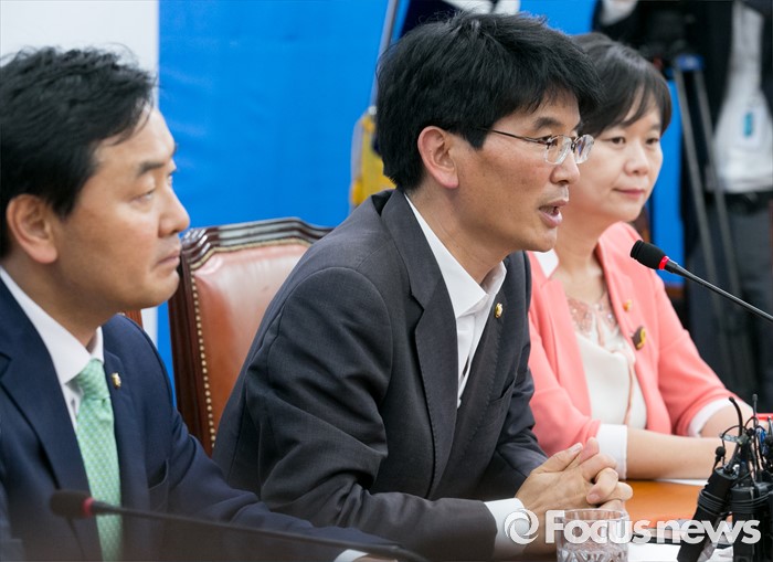 (서울=포커스뉴스) 박완주(가운데) 더불어민주당 원내수석부대표, 김관영(왼쪽) 국민의당 원내수석부대표, 이정미 정의당 원내수석부대표가 20일 오후 서울 여의도 국회에서 현안 관련 회동을 열고 취재진에게 설명하고 있다.