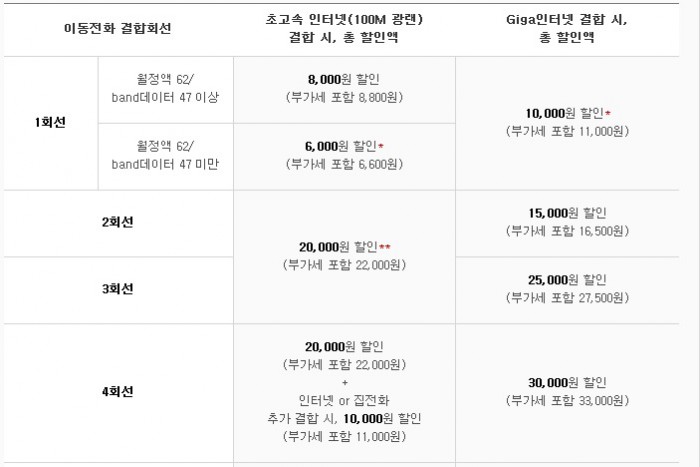 SK텔레콤의 온가족무료는 이동전화와 인터넷, 집전화를 함께 쓰면 결합 가족 수에 따라 인터넷, 집전화를 기본 제공 또는 할인해주는 유무선 결합상품이다. 이동전화 2~3회선을 인터넷과 합치면 인터넷(월 2만원)이 무료, 4회선을 합치면 인터넷 무료제공에 집전화 1만원(월 3만원)이 할인된다. SK텔레콤뿐 아니라 KT와 LG유플러스도 각각 ‘뭉치면올레’, ‘한방에홈’ 등의 결합상품을 판매하고 있다.