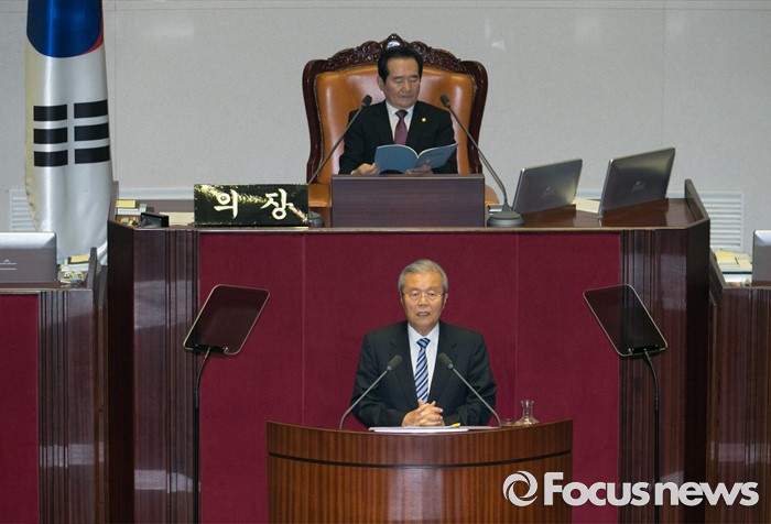 | △ 더민주 김종인, 교섭단체 대표연설 |