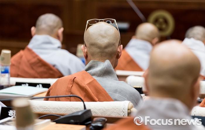 (서울=포커스뉴스) 21일 오전 서울 종로구 한국불교역사문화기념관에서 열린 제206회 조계종 중앙종회 임시회의에서 중앙종회의원들이 회의시작을 기다리고 있다. 이번 중앙종회 임시회에서는 총무원장 선출제도를 집중적으로 다룰 예정이다.
