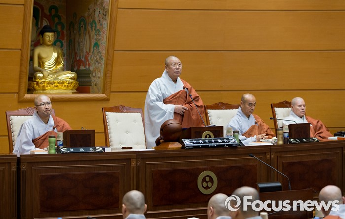(서울=포커스뉴스) 21일 오전 서울 종로구 한국불교역사문화기념관에서 열린 제206회 조계종 중앙종회 임시회의에서 조계종 중앙종회의장 성문 스님이 개회사를 하고 있다. 이번 중앙종회 임시회에서는 총무원장 선출제도를 집중적으로 다룰 예정이다.