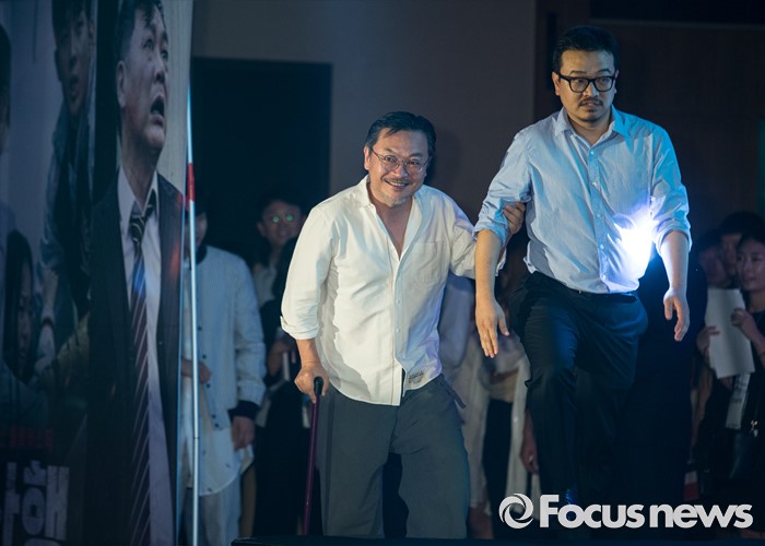 (서울=포커스뉴스) 21일 오전 서울 종로구 나인트리컨벤션에서 열린 영화 '부산행' 제작보고회에 참석한 배우 김의성(왼쪽)과 연상호 감독이 이동하고 있다.