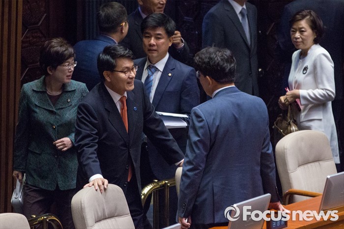 (서울=포커스뉴스) 권성동 새누리당 사무총장과 윤상현 새누리당 의원이 21일 오전 서울 여의도 국회에서 열린 본회의에 참석해 대화를 나누고 있다.
