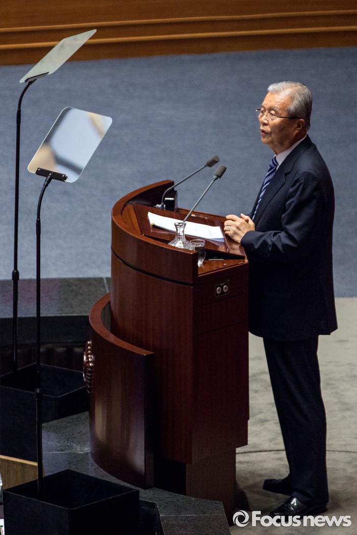 (서울=포커스뉴스) 김종인 더불어민주당 비상대책위 대표가 21일 오전 서울 여의도 국회에서 열린 본회의에 참석해 교섭단체대표 연설 하고 있다.