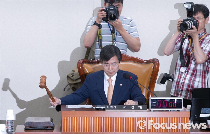 (서울=포커스뉴스) 21일 오전 서울 여의도 국회에서 열린 기획재정위원회 전체회의에 참석한 조경태 위원장이 안건 의결을 하고 있다.