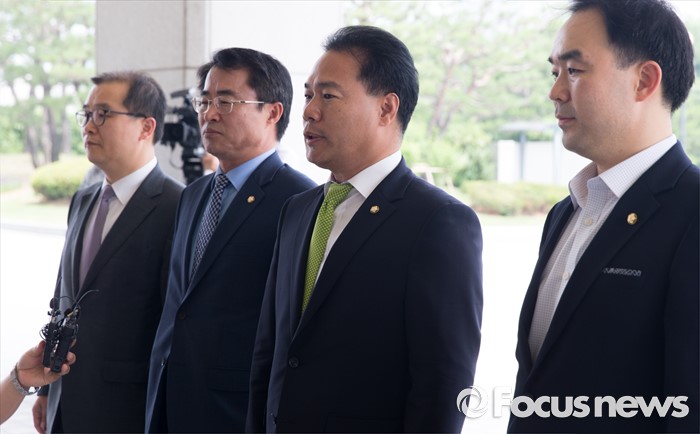 (서울=포커스뉴스) 21일 오후 서울 서초구 대검찰청에서 이용주(오른쪽 두번째) 국민의당 의원이 어버이연합 등 불법자금지원 의혹 규명 진상조사 특별팀(TF)의 항의방문을 위해 대검으로 들어서고 있다. 왼쪽부터 이건태 국민의당, 최경환 의원, 이용주 의원, 채이배 의원.