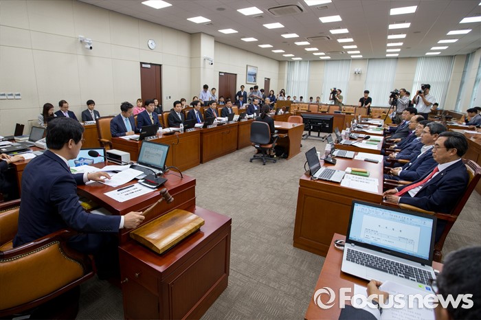 (서울=포커스뉴스) 김영우 국회 국방위원회 위원장이 21일 오전 서울 여의도 국회에서 열린 전체회의에 참석해 의사봉을 두드리고 있다.