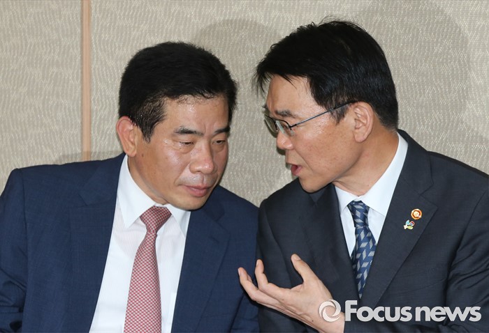 (세종=포커스뉴스) 강호인 국토교통부장과이 21일 오후 세종시 정부세종청사 국토교통부 브리핑실에서 열린 동남권 신공항 타당성 검토 연구 최종 보고회에서 입지선정 결과에 따른 정부입장을 밝히고 있다.