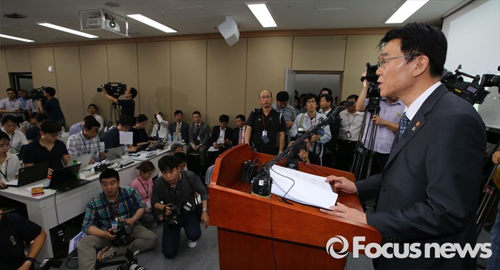 (세종=포커스뉴스) 강호인 국토교통부장과이 21일 오후 세종시 정부세종청사 국토교통부 브리핑실에서 열린 동남권 신공항 타당성 검토 연구 최종 보고회에서 입지선정 결과에 따른 정부입장을 밝히고 있다.