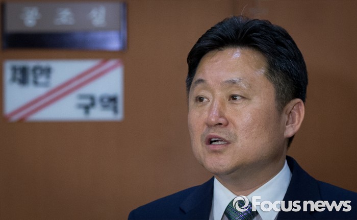 (서울=포커스뉴스) 21일 오후 서울 여의도 국회 정론관에서 최인호 더불어민주당 의원이 영남권 신공항 결과 발표 관련 기자회견을 하고 있다.