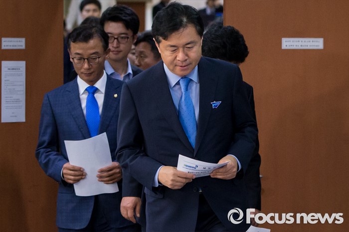 (서울=포커스뉴스) 더불어민주당 부산 지역 의원들이 21일 오후 영남권 신공항 결과 발표 관련 기자회견을 위해 서울 여의도 국회 정론관으로 발걸음을 옮기고 있다.