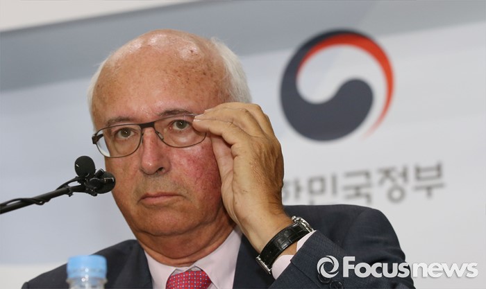 (세종=포커스뉴스) 장 마리 슈발리에 프랑스 파리공항공단자회사 ADPi 수석엔지니어가 21일 오후 세종시 정부세종청사 국토교통부 브리핑실에서 열린 동남권 신공항 타당성 검토 연구 최종 보고회에서 입지선정 결과 발표를 마치고 취재진의 질문을 듣고 있다.