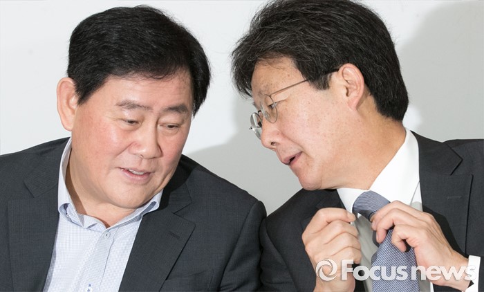 (서울=포커스뉴스) 22일 오전 서울 여의도 국회에서 열린 새누리당 신공항 관련 5개 시도 중진의원 간담회에 참석한 최경환(왼쪽), 유승민 의원이 대화하고 있다.