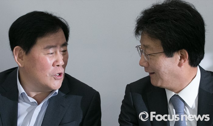 (서울=포커스뉴스) 22일 오전 서울 여의도 국회에서 열린 새누리당 신공항 관련 5개 시도 중진의원 간담회에 참석한 최경환(왼쪽), 유승민 의원이 대화하고 있다.