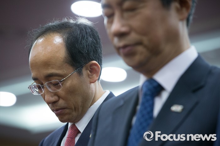 (서울=포커스뉴스) 추경호 새누리당 의원이 22일 오전 서울 여의도 국회 의원회관에서 열린 경제재정연구포럼 토론회에 참석해 묵념하고 있다.