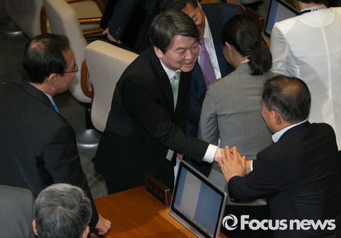 (서울=포커스뉴스) 22일 오전 서울 여의도 국회에서 열린 343회 국회(임시회) 5차 본회의에 참석한 안철수 국민의당 상임공동대표가 교섭단체 대표연설을 마친 뒤 동료 의원들과 인사하고 있다.