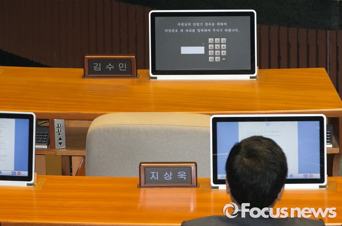 (서울=포커스뉴스) 22일 오전 서울 여의도 국회에서 열린 343회 국회(임시회) 5차 본회의에 불참한 김수민 국민의당 의원의 빈 자리가 보이고 있다.