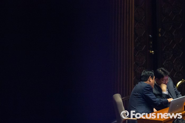 (서울=포커스뉴스) 정진석 새누리당 원내대표와 권성동 사무총장이 22일 오전 서울 여의도 국회에서 열린 본회의에 참석해 대화 하고 있다.