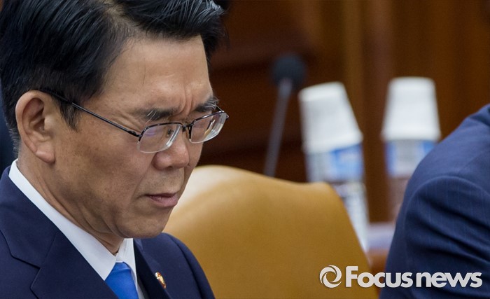 (서울=포커스뉴스) 22일 오후 서울 종로구 정부서울청사에서 열린 경제관계장관회의에 참석한 유일호 강호인 국토교통부 장관이 인상을 찌푸리고 있다.