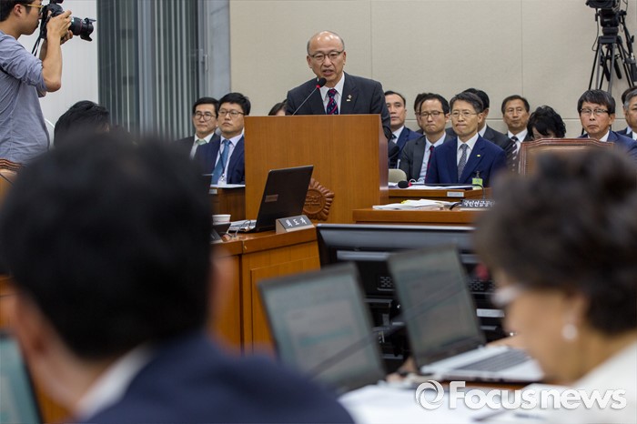 (서울=포커스뉴스) 문형표 국민연금공단 이사장이 22일 오후 서울 여의도 국회에서 열린 '보건복지위원회 전체회의'에 참석해 2015년 메르스 사태 당시 보건복지부 장관을 중간에 사퇴한 이유로 국정감사 출석에 불응한 것과 메르스 사태 미수습에 대해 사과 하고 있다.