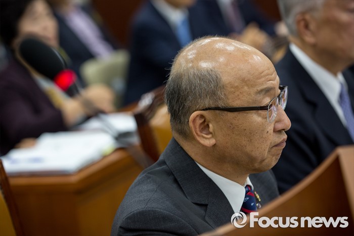 (서울=포커스뉴스) 문형표 국민연금공단 이사장이 22일 오후 서울 여의도 국회에서 열린 '보건복지위원회 전체회의'에 참석해 김상희 국회 보건복지위원회 더불어민주당 위원의 의사 발언을 듣고 있다. 이날 김 위원은 문 이사장에게 2015년 메르스 사태 당시 보건복지부 장관을 중간에 사퇴한 이유로 국정감사 출석에 불응한 것과 메르스 사태 미수습에 대해 사과할 것을 요구 했다.