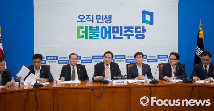(서울=포커스뉴스) 우상호(가운데) 더불어민주당 원내대표가 22일 오후 서울 여의도 국회에서 열린 더불어민주당 세월호 TF 회의에서 발언하고 있다.
