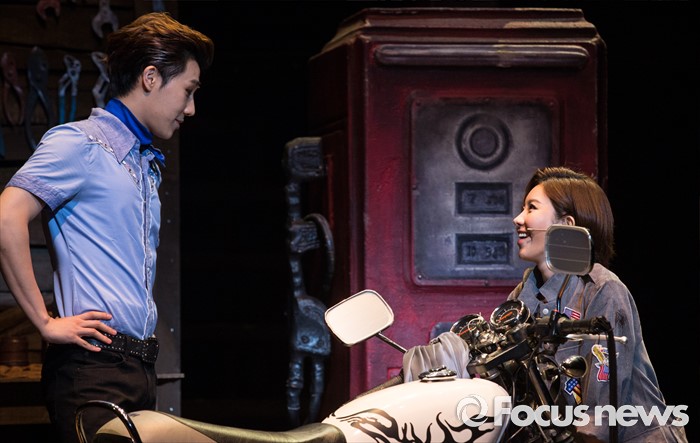 (서울=포커스뉴스) 22일 오후 서울 종로구 홍익대학고 대학로 아트센터에서 열린 뮤지컬 '올슉업' 프레스콜에 참여한 배우 김성규(왼쪽)와 제이민이 주요장면을 시연하고 있다.