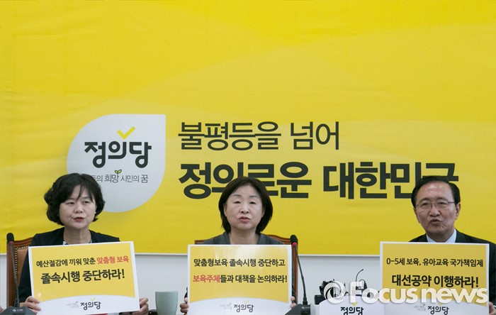 | △ 정의당 지도부, 정부 맞춤형 보육 시행반대! |