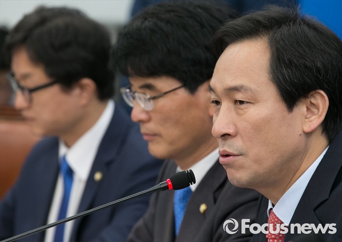 (서울=포커스뉴스) 우상호 더불어민주당 원내대표가 23일 오전 서울 여의도 국회에서 열린 정책조정회의에 참석해 모두발언을 하고 있다.