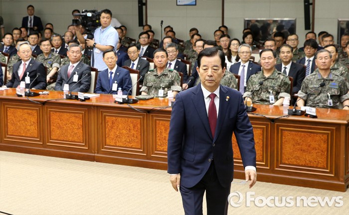 (서울=포커스뉴스) 북한이 무수단급 중거리 탄도미사일을 발사한 다음날인 23일 오전 서울 용산구 국방부 대회의실에서 열린 '2016년 전반기 전군 주요지휘관 회의'에 참석한 한민구 국방부 장관이 시상식을 마치고 자리로 돌아가고 있다.