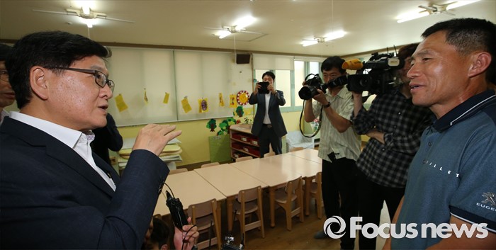 (공주=포커스뉴스) 정진엽 보건복지부 장관이 23일 오후 충남 공주시 신관동 동심어린이집을 방문해 어린이집 집단휴원 상황을 점검하고 있다. 이날 전국민간어린이집연합회 소속 어린이집 5185곳이 자율등원 형태로 운영됐다. 정 장관이 방문한 동심어린이집도 총원 93명 중 13명만 자율등원 했다.