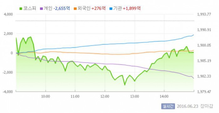 증시 전문가들은 코스피 하락에 대해 "브렉시트 국민투표를 앞두고 일부 여론조사에서 유럽연합(EU) 탈퇴가 1∼2%포인트 우위를 보인 영향으로 보인다"고 진단했다.
