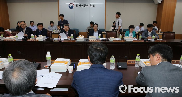 (세종=포커스뉴스) 박준성 최저임금위원회 위원장이 23일 오후 세종시 정부세종청사 고용노동부 최저임금위원회 전원회의실에서 열린 5차 전원회의를 주재하고 있다.