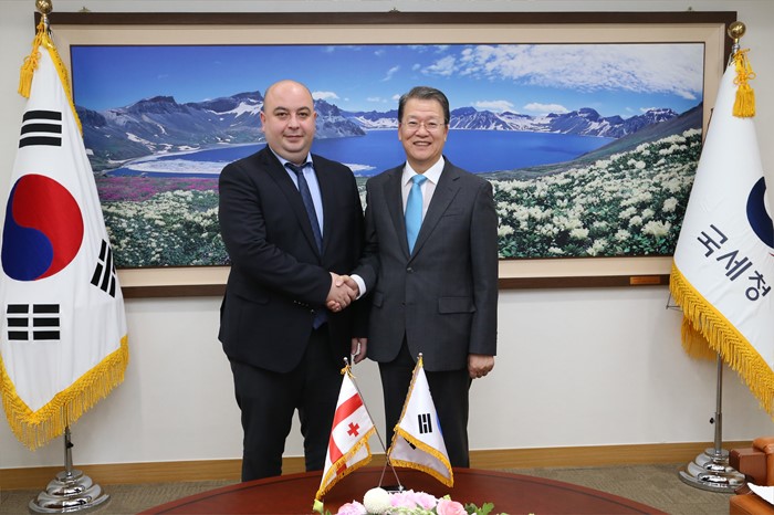 (세종=포커스뉴스) 임환수 국세청장이 23일 국세청에서 라사 토디아 조지아공화국 감사원장과 접견하고 있다. <사진제공=국세청>