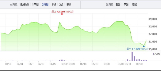 앞서 텔콘은 “보통주 1주당 1주를 배정하는 무상증자를 결정했다”고 23일 공시했다. 신주는 총 502만2000주로 신주 상장 예정일은 7월29일이다.주가흐름<사진출처=네이버 캡쳐>