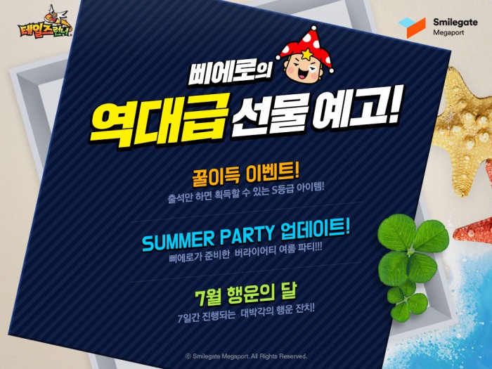 (서울=포커스뉴스) 스마일게이트메가포트(이하 메가포트, 대표 이동훈)는 인기 온라인 액션 레이싱 게임 '테일즈런너'(개발사 라온엔터테인먼트)에서 여름 시즌을 겨냥한 다채로운 이벤트와 업데이트를 선보인다고 24일 밝혔다.