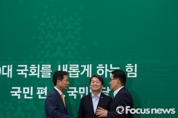 (서울=포커스뉴스) 천정배(왼쪽) 국민의당 공동대표와 박지원(오른쪽) 원내대표가 24일 오전 서울 여의도 국회에서 황인무 국방부 차관에게 북한 미사일 발사 관련 현안보고 받기 전 대화를 나누고 있다.