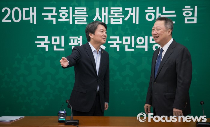 (서울=포커스뉴스) 안철수 국민의당 상임공동대표가 24일 오전 서울 여의도 국회에서 박용만 대한상공회의소 회장을 만나 자리를 안내하고 있다.