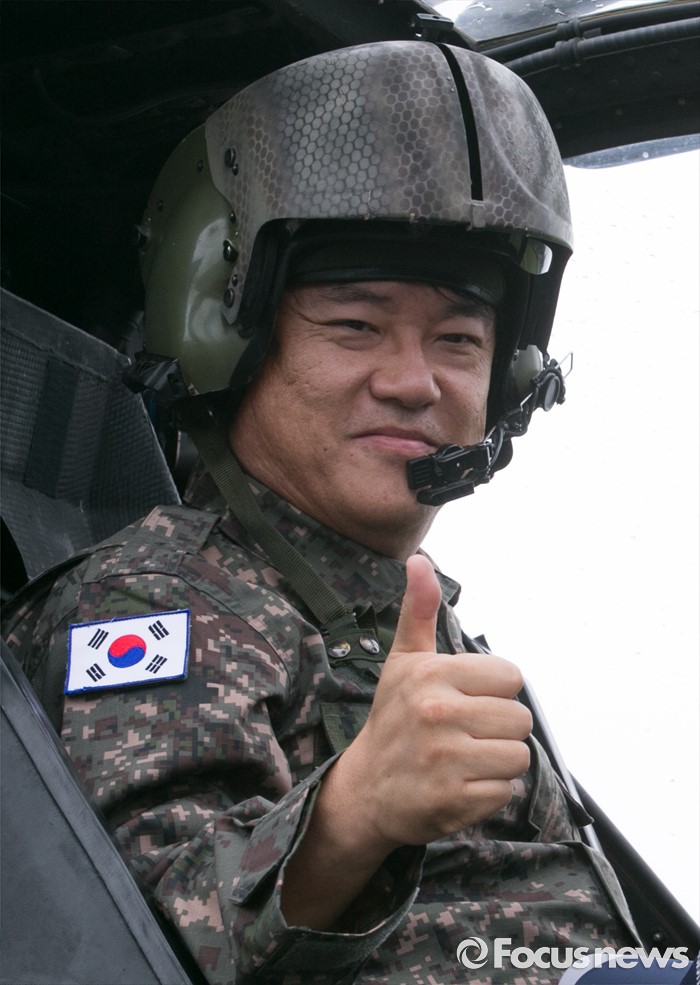 | △ 아파치 헬기 탑승해 포즈 취한 정진석 |