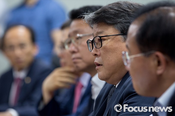 (서울=포커스뉴스) 24일 오후 서울 여의도 국회 의원회관에서 열린 영남권 신공항 백지화 관련 여야 대구지역 의원들과 강호인 국토교통부 장관의 면담에 참석한 조원진 새누리당 의원이 발언하고 있다.