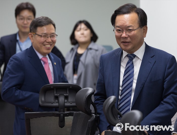 (서울=포커스뉴스) 24일 오후 서울 여의도 국회 의원회관에서 열린 여야 대구지역 의원들과 강호인 국토교통부 장관의 영남권 신공항 백지화 관련 면담에 김부겸 더불어민주당 의원이 참석하고 있다.