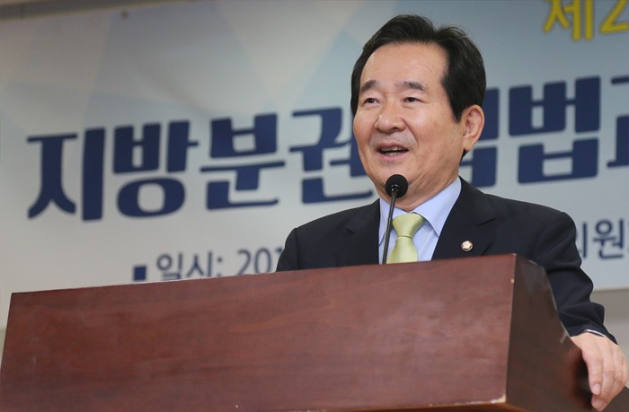 (서울=포커스뉴스) 정세균 국회의장이 24일 오전 서울 여의도 국회 의원회관에서 열린 '지방분권 입법과제와 실천방안 토론회'에 참석해 축사를 하고 있다. <사진제공=국회>