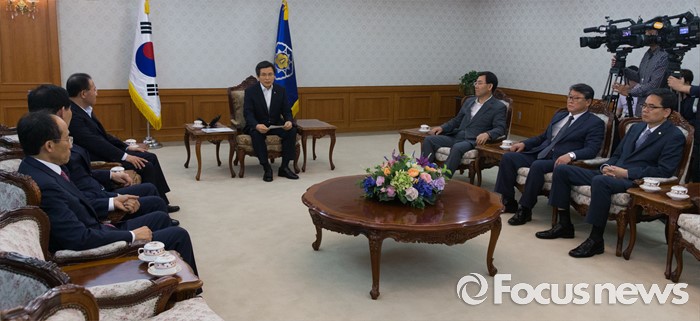 (서울=포커스뉴스) 황교안 국무총리와 대구지역 국회의원들이 24일 오후 서울 종로구 정부서울청사에서 영남권 신공항 백지화 관련 면담하고 있다.