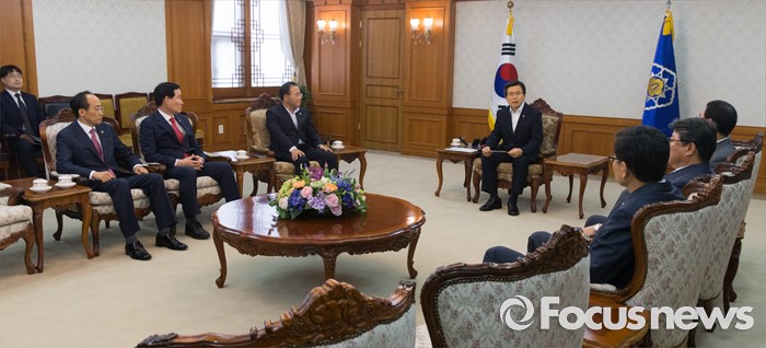 (서울=포커스뉴스) 황교안 국무총리와 대구지역 국회의원들이 24일 오후 서울 종로구 정부서울청사에서 영남권 신공항 백지화 관련 면담하고 있다.