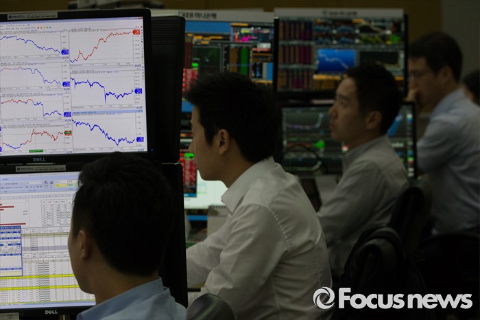 24일 독일 DAX지수는 개장 직후 10.02% 하락 출발했고, 프랑스 CAC40 지수는 8.08%, Euro Stoxx 50 지수는 6.49% 큰 폭으로 하락했다. 스페인 IBEX 지수도 개장 직후 8.55% 하락했으며 영국 FTSE100 지수도 3.41% 떨어져 동반 약세를 보이고 있다.(서울=포커스뉴스) 영국의 유럽연합(EU) 탈퇴를 의미하는 '브렉시트'가 확정된 가운데 24일 오후 서울 중구 KEB 하나은행 명동 본점 딜링룸에서 딜러들이 업무를 보고 있다. 이날 코스피는 전날 대비 61.47p(3.09%) 내린 1,925.24, 코스닥은 32.36p(4.76%) 내린 647.16, 환율은 29.7원 오른 1,179.9원을 기록하며 장을 마감했다. 2016.06.24 이승배 기자